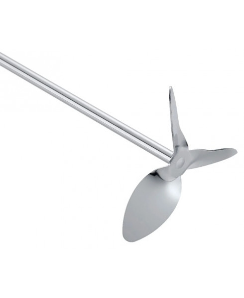Asta di agitazione elicoidale a 3 pale, forma aerodinamica. Aspirazione del prodotto da miscelare dall'alto e dal basso. Ridotte forze di taglio. Impiego a velocità medie ed alte. Diamtro agitatore (mm): 140; diametro albero (mm): 10; lunghezza albero (mm): 800; velocità massima (rpm): 400.
