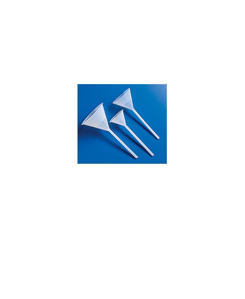 Corpo angolato esattamente di 60°, munito di scanalature; Il gambo lungo si riempie di liquido filtrato creando sotto il filtro una depressione che rende più rapida la filtrazione.