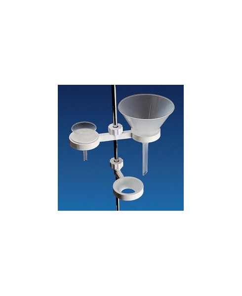 Supporto portaimbuti doppio, per imbuti da 25 mm (con adattatore a corredo) fino a 170 mm. Senza l'adattatore può essere usato con imbuti per polveri con gambo di diametro non superiore a 35 mm.