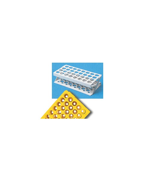 Portaprovette termoresistenti fino a 90 °C. Fornibili nei colori bianco, giallo, verde, rosa, blu.