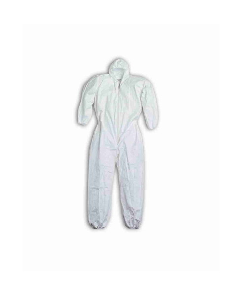 - in polipropilene con cappuccio fisso con elastico e chiusura a cerniera. Elastici a polsi e caviglie.