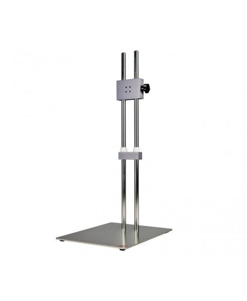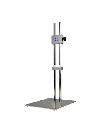Supporto con piastra in acciaio inossidabile e due aste di supporto (altezza 700 mm), supporto per unità di azionamento regolabile in altezza e barra di posizionamento di sicurezza.