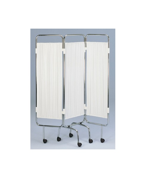 Paravento rivestito in tessuto di colore bianco a 3 elementi, struttura in lega leggera anodizzata.