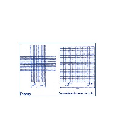 Camere conta globuli in vetro, senza pinze, con doppio reticolo di lettura resistente agli agenti chimici aggressivi. Marcate CE secondo la direttiva IVD 98/79/CE.