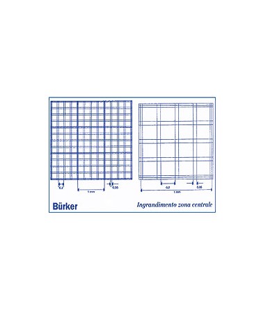 Ogni reticolo è formato da una griglia di 3x3 quadrati grandi, ciascuno di 1 mm di lato e profondità di 0,1 mm. Questi quadrati vengono utilizzati per la conta dei leucociti. Ciascun quadrato grande è, a sua volta, suddiviso da doppie linee di spessore 0,05 mm in 16 quadrati più piccoli la cui area interna è di 0,04 mm2. L’incrocio delle doppie linee forma dei mini quadrati di 0,05x0,05 mm2 utili per il conteggio dei trombociti e degli eritrociti.