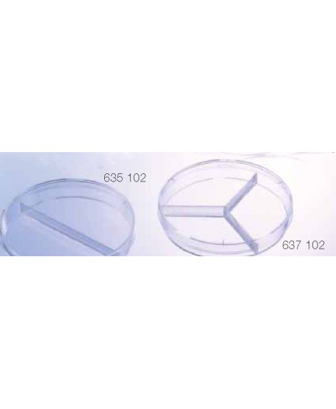 Piastre a settori originali Greiner Bio One, realizzate con polistirene di elevata qualità con eccezionali proprietà ottiche, per le analisi al microscopio, ed ottima resistenza al calore, per l'utilizzo con agar caldo.