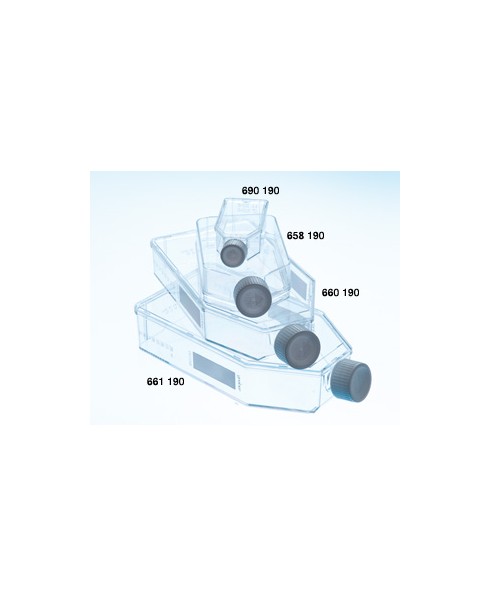 Fiasche per colture in sospensione, realizzate in polistirene, sterili, Greiner Bio One serie CELLSTAR®, con collo inclinato e tappo standard.