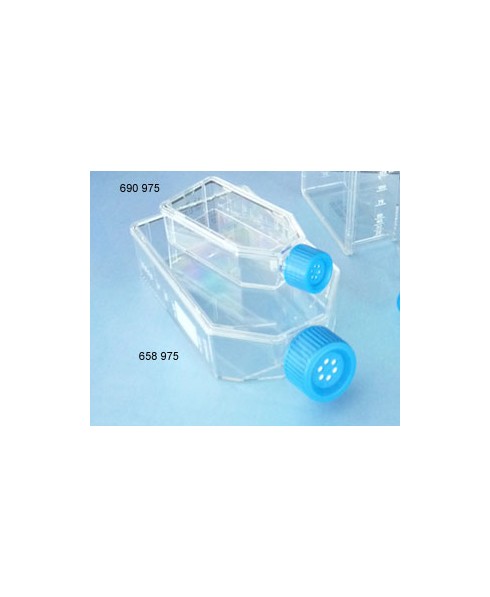 Fiasche con superficie di adesione modificata per colture in adesione di cellule particolarmente difficili, per colture primarie o per cellule in condizioni di crescita restrittive (in riduzione o assenza di siero), sterili, Greiner Bio One serie ADVANCED TC.