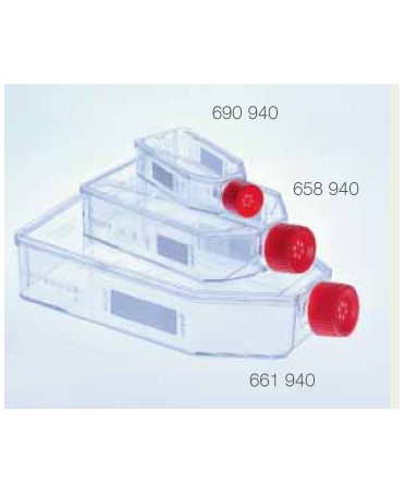 Fiasche CELLCOAT®, GREINER, fibronectin da 650 ml, 175 CM², ps, tappo a vite rosso con filtro, imballo 10 pezzi