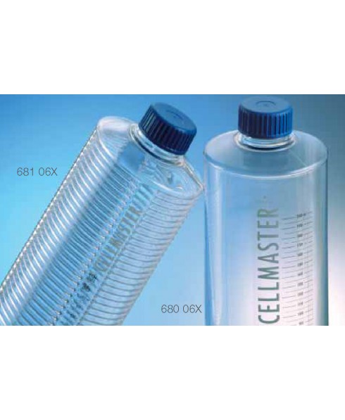 Flaconi per coltrure CELLMASTER ROLLER GREINER in PS 122,0X500 mm, con tappo forma scanalata area sup. 4250 cm2 conf. singola imballo 12