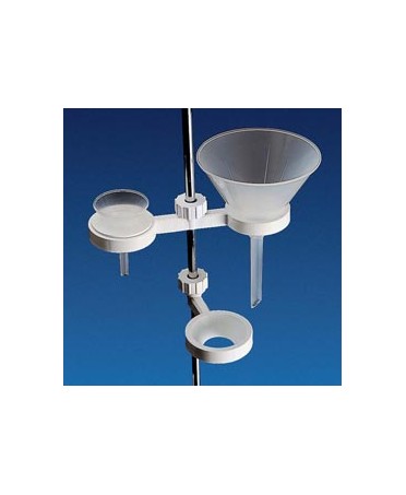 Supporto portaimbuti doppio, per imbuti da 25 mm (con adattatore a corredo) fino a 170 mm. Senza l'adattatore può essere usato con imbuti per polveri con gambo di diametro non superiore a 35 mm.