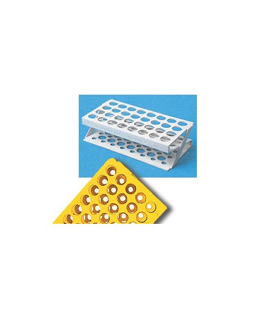 Portaprovette termoresistenti fino a 90 °C. Fornibili nei colori bianco, giallo, verde, rosa, blu.