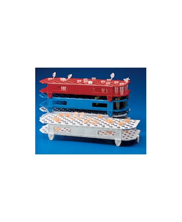 Portaprovette a due piani disponibile in quattro colori; è un supporto molto versatile, autoclavabile e può essere usato sia a secco che in bagno-maria o in freezer.