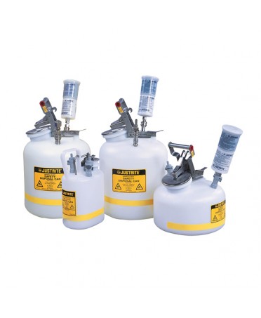 I Contenitori BOCCHI JUSTRITE in polietilene ad alta densità possono raccogliere liquidi corrosivi di scarto ed infiammabili meglio dei normali contenitori metallici. L'apertura sui contenitori di scarto è più grande (Ø 8 cm) e strategicamente posizionata in modo tale da facilitarne le operazioni di riempimento e di svuotamento. Il fermo della maniglia permette al coperchio di rimanere in posizione aperta per rendere le operazioni più facili. In posizione chiusa, il coperchio opera come valvola di sicurezza alle sovrapressioni con pressione superiore a 0,3 bar. Sono dotati di retina rompifiamma a doppia maglia e la meccanica può essere in acciaio cadmiato o in acciaio inossidabile (per liquidi corrosivi, infiammabili, combustibili e solventi). Esiste inoltre la possibilità di poter travasare i liquidi infiammabili, combustibili e solventi col nuovo modello dotato di pompa in acciaio inox.