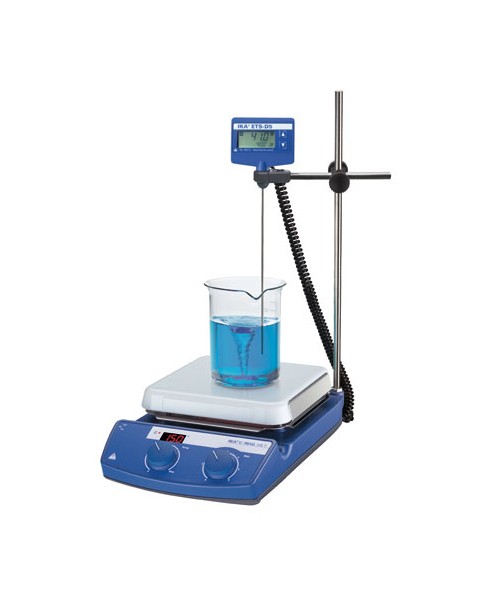 Agitatore magnetico con riscaldamento IKA C-MAG HS 7 PACKAGE dotato di superficie in vetro ceramica ad alta resistenza chimica(caratteristiche come codice 22.0279.82) completo di termometro elettronico a contatto ETS-D5, asta di supporto H38, stativo H16V, morsetto H44.