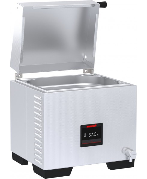 Perfetto per l'uso quotidiano in laboratorio: la vasca  in acciaio inossidabile di alta qualità con angoli arrotondati è facile da pulire e può essere completamente svuotato utilizzando la valvola di scarico standard senza lasciare residui. Il design compatto ed ergonomico significa che Memmert WTB si adatta a qualsiasi banco da laboratorio.