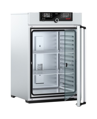 All'interno della camera di umidità Memmert HCP per simulazioni ambientali, tramite il controllo attivo dell'umidità, viene prodotta un'omogeneità ideale di temperatura e umidità, in tempi rapidi anche dopo l'apertura della porta. Ciò rende quindi possibile una perfetta simulazione ambientale. Il riscaldamento è fornito su tutti e sei i lati, compresa la porta interna in vetro riscaldata. Ciò riduce al minimo l'evaporazione e riduce il rischio di gocciolamento della condensa sui campioni. Una camicia di conduzione termica in alluminio funge da accumulo di calore in caso di mancanza temporanea di energia e supporta la distribuzione ottimale della temperatura. La camera climatica è particolarmente adatta per test ambientali, simulazioni ambientali, test di vita accelerati e test 85/85 secondo IEC 60068-2-67 e IEC 60068-2-78. Disponibile in 4 versioni da 56,107,56,241 litri.