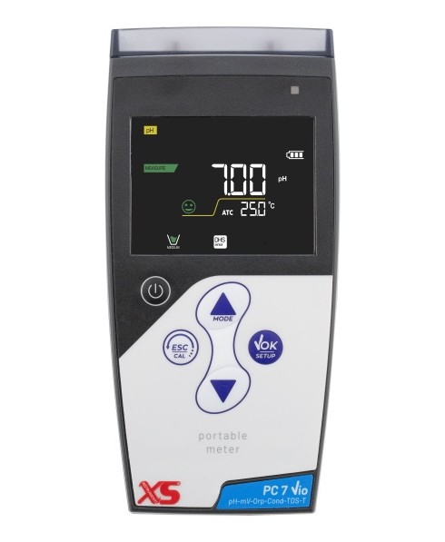 Multiparametro portatile professionale PC 7 VIO di pH - mV - ORP - Cond - TDS - Temperatura con innovativo display LCD a colori ad alta definizione retroilluminato. Dotato di elettrodo 201 T e cella 2301T entrambi con sensore di temperatura incorporato e cavo fisso da 1 m.