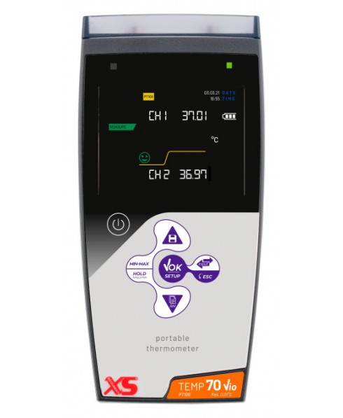 Il termometro portatile TEMP 70 VIO è la scelta ideale per misurazioni accurate e precise in un ampio intervallo di misure e il doppio canale centesimale permette l’utilizzo  in moltissime applicazioni.