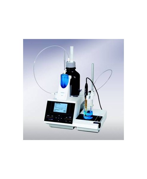 Titolatore potenziometrico per titolazione pH-metriche, redox, argentometriche, fotometriche e titolazione pH stat (enzimatiche) modello TL 7000 fornito completo di unità base TL 7000 mini tastiera PC per un comodo inserimento dati, mouse per comando start/stop testa porta elettrodi e buretta e stand di montaggio della stessa.