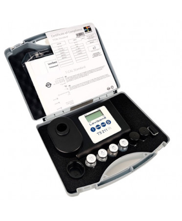 TB1 è fornito completo di un set di 4 standard di calibrazione (800, 100, 20 e 0,02 NTU, cod. CE0012020) tracciabili NIST, 3 vial (cod. CE0012030), panno, olio di silicone (cod. CE0012050), batterie e borsa di trasporto.