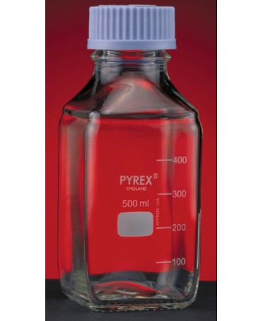 Flacone autoclavabile vetro Pyrex® ISO 45 forma quadrata con tappo a vite blu ml 500
