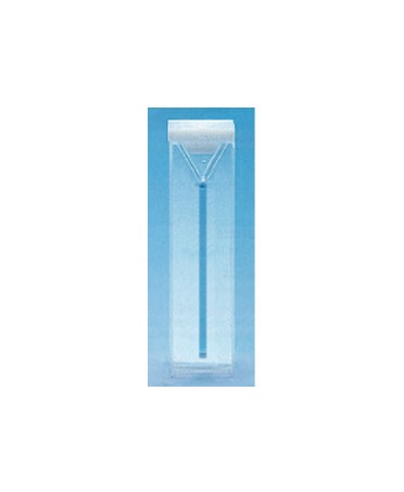 Cuvette con coperchio. Per piccolissime quantità di liquido. Due pareti smerigliate e due con fessure perfettamente trasparenti. Imboccatura interna leggermente svasata per facilitare il riempimento. Larghezza 12,5 mm Altezza 45 mm Larghezza interna 2 mm.
