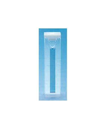 Cuvette con coperchio. Per piccole quantità di campione. Due pareti smerigliate e due con fessure perfettamente trasparenti. Larghezza 12,5 mm Altezza 45 mm Larghezza interna 4 mm.