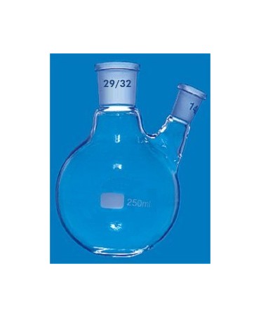 Palloni con sfondo sferico in vetro borosilicato Pyrex® o Duran® resistente agli sbalzi termici e agli agenti aggressivi, con 2 colli con cono smerigliato secondo le norme ISO.