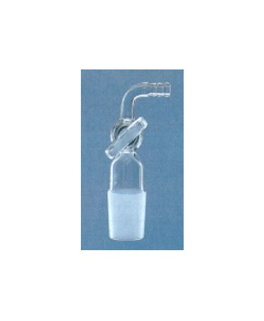 Raccordi in vetro, cono maschio con rubinetto PTFE, tubetto piegato, vetro borosilicato.