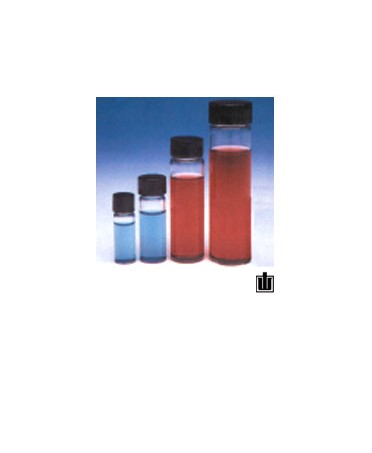 Vials in vetro borosilicato Wheaton 33®, per protezione contro cambi del pH e per mantenere la purezza del contenuto. Tappo a vite fenolico nero chiuso e sottotappo in stirene-butadiene bianco. Autoclavabili. Confezionate in vassoi di cartone ondulato con divisori.