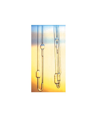 Viscosimetri di Ubbelohde in vetro, per determinazione viscosità cinematica in centistokes di liquidi trasparenti secondo norme ASTM D445, D-446, IP71, ISO3104-3105, DIN 52562 completi di certificazione di taratura.